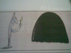 La frase salía en una viñeta en un periódico que recorté y desde entonces está en la puerta de la nevera… Solo así la veo todas y cada una de las mañanas.